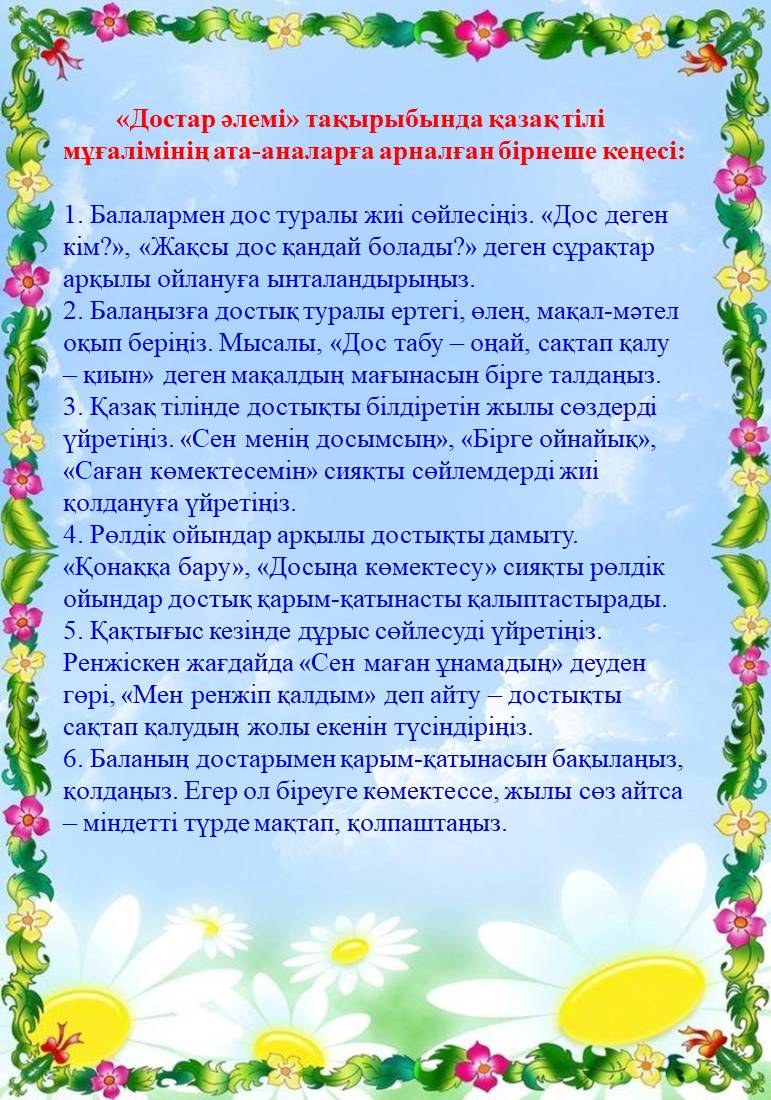 » » "Достар әлемі" ата-аналарға арналған қазақ тілі мұғалімінің кеңесі