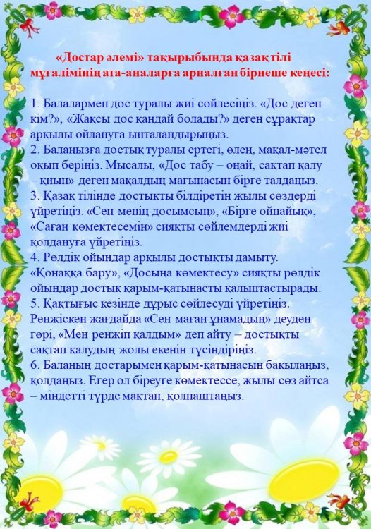"Достар әлемі" ата-аналарға арналған қазақ тілі мұғалімінің кеңесі