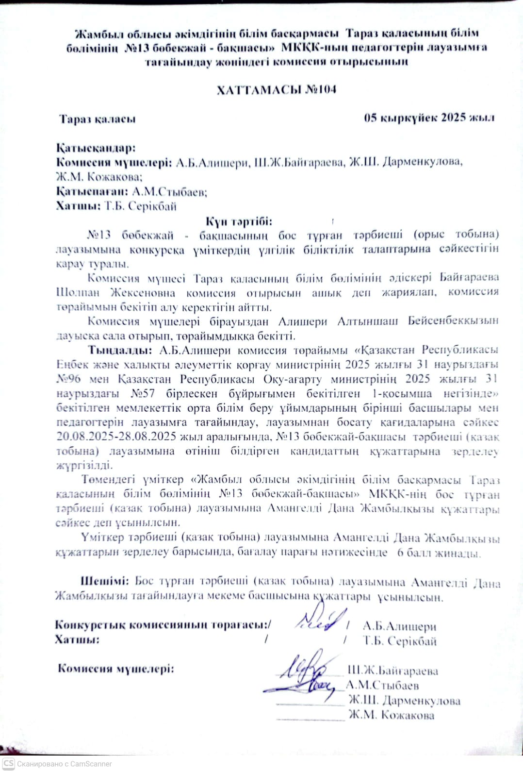 Конкурс нәтижесі (Тәрбиеші лауазымы қазақ топтарына) » №13 бөбекжай бақшасы