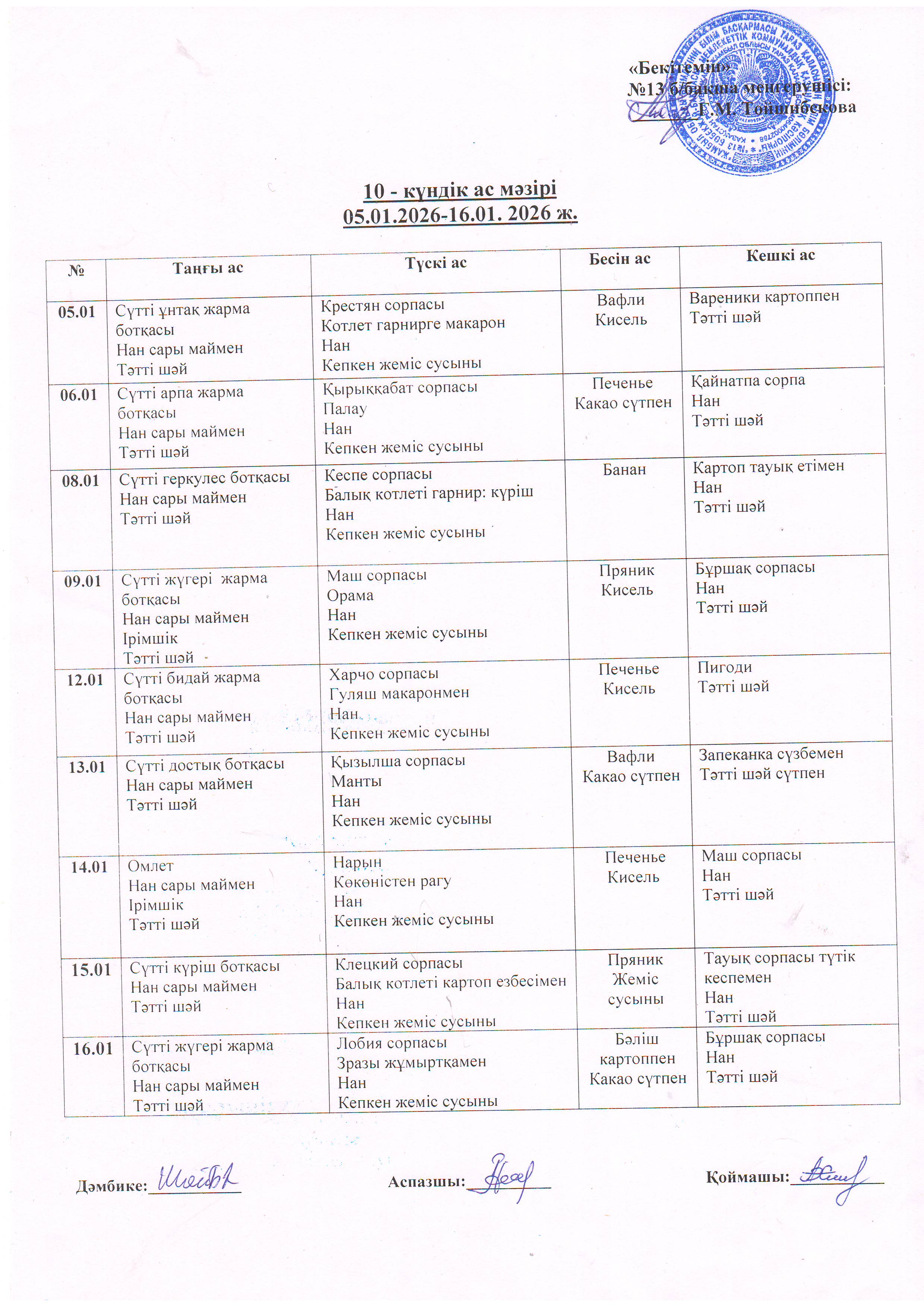 Ас мәзірі » №13 бөбекжай бақшасы