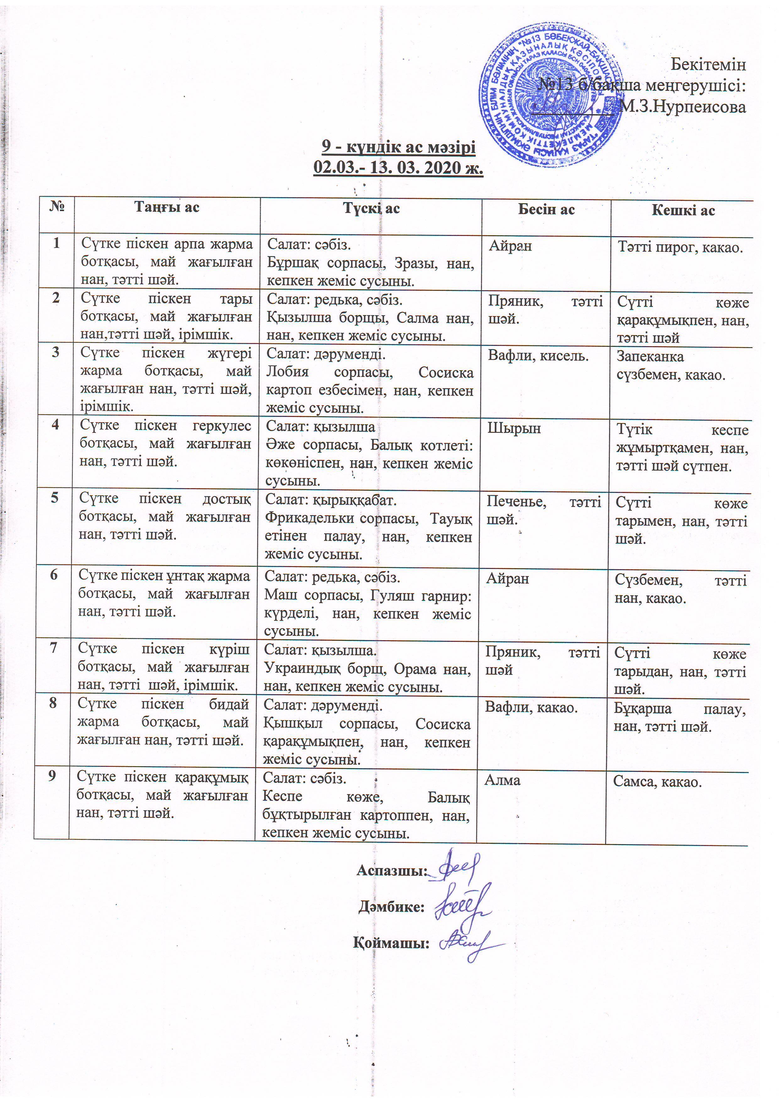 Ас мәзірі » №13 бөбекжай бақшасы