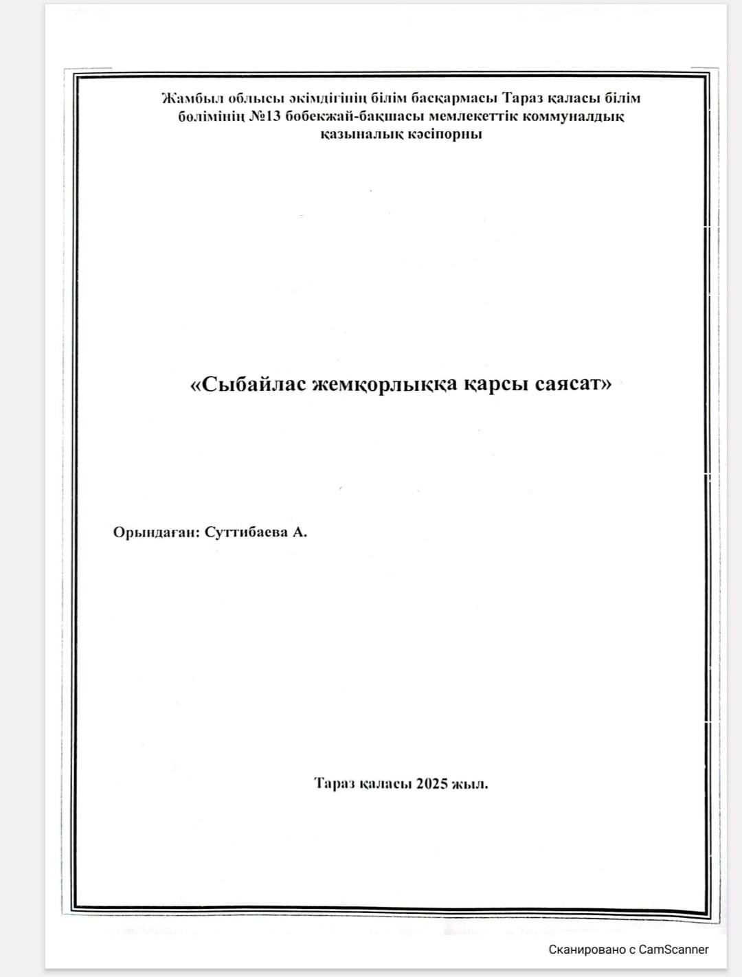 "Сыбайлас жемқорлыққа қарсы саясат" » №13 бөбекжай бақшасы